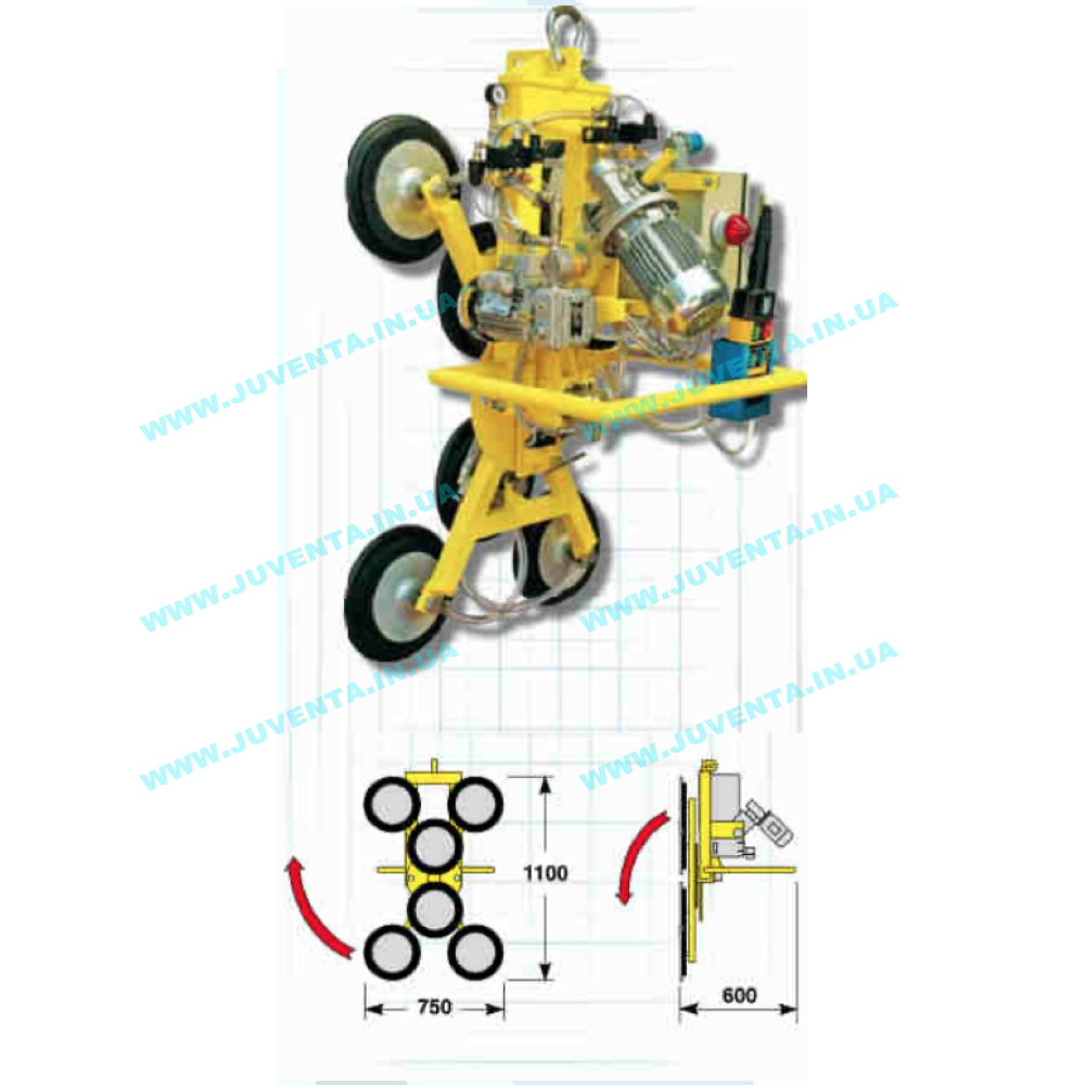 Мобільний пристрій з 6 присосками з ручним обертанням на 360°, з кроком 90° і моторизованим нахилом,